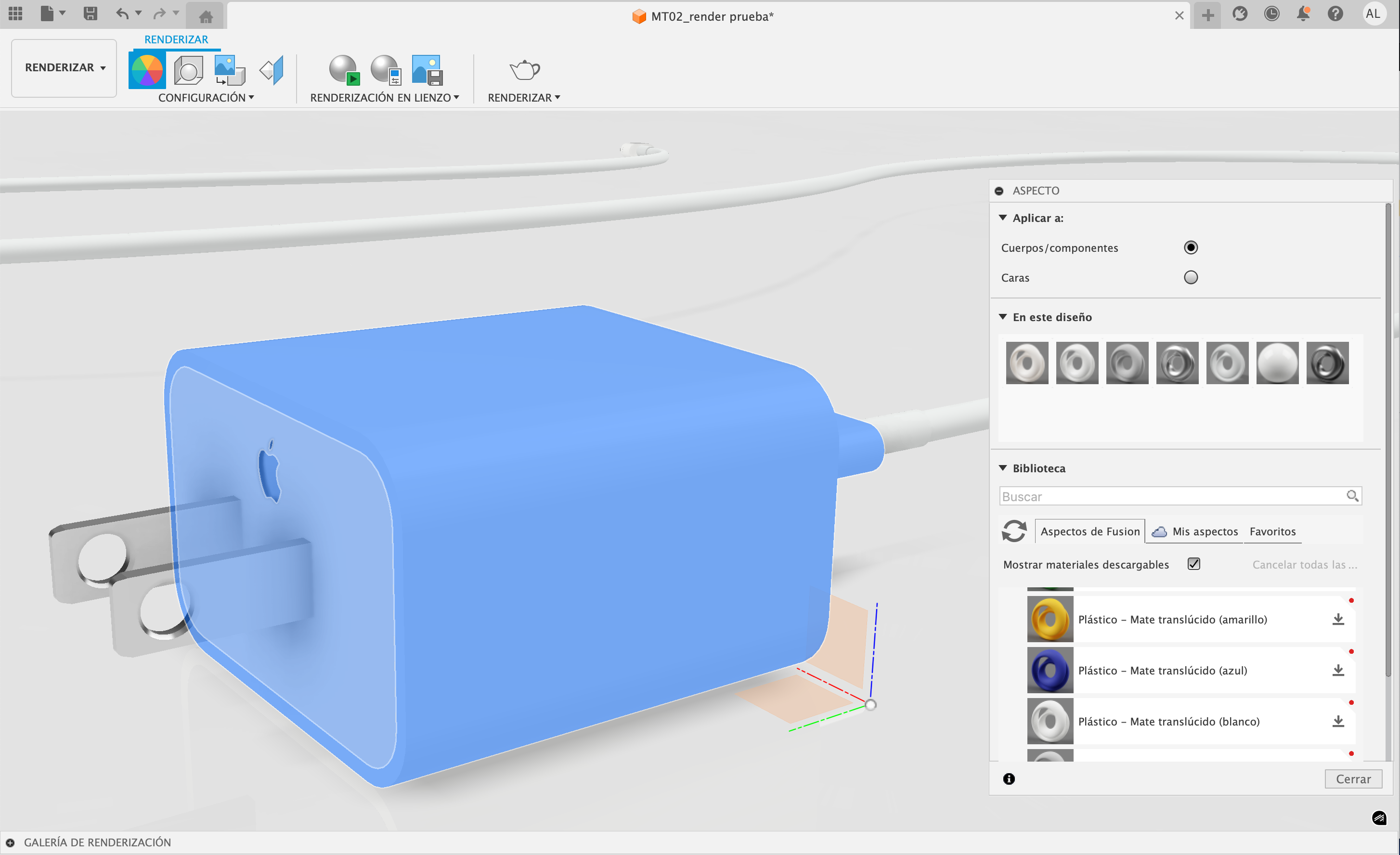 FUSION 360 . MODELO 3D ~ RENDER / APLICACIÓN DE MATERIALES