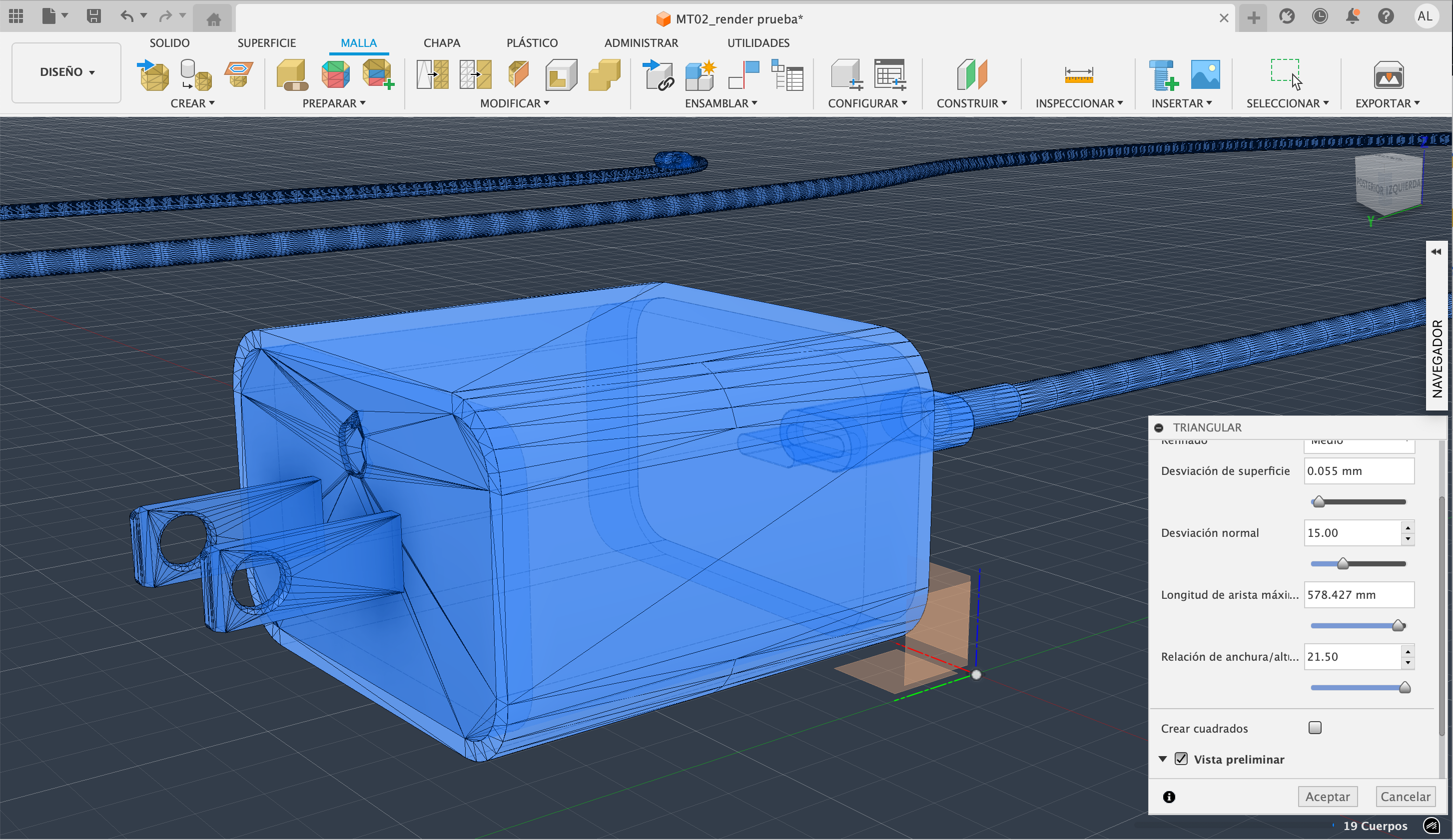 Generación de modelado 3D sólido (nurbs ~ Polisuperficie) a partir del .stl (Mesh).