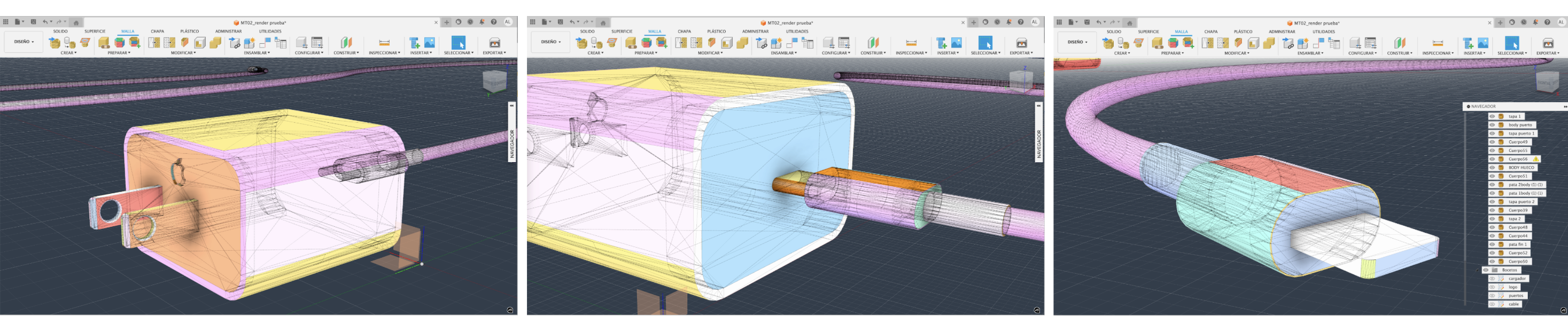 Fusion 360 (Autodesk) Autodesk Fusion, es una plataforma de software CAD, CAM, CAE y de circuitos impresos de modelado 3D basada en la nube para el diseño y la manufactura de productos. Es un software estrictamente técnico y conveniente para modelar bidimensional y tridimensionalmente si se conoce de antemano y claramente la geometría del objeto proyectado. El software dispone de un sistema de modelado riguroso y estructurado (scketch y línea tiempo fases modelado). Es óptimo para ejecutar el modelado 3D 100% técnico directo para la materialización en tecnología de fabricación digital. A diferencia de Rhino permite desarrollar proyectos orientados hacia la mecánica y electrónica (posibilitando, asignar movilidad al modelado, cálculos matemáticos sobre las propiedades físicas, ensayos mecánicos sobre materialidad, etc). Formatos de archivo principales compatibles para importar y exportar formatos de diseño 2D y 3D para fabricación digital: dwg, dxf, stl, obj y 3mf.